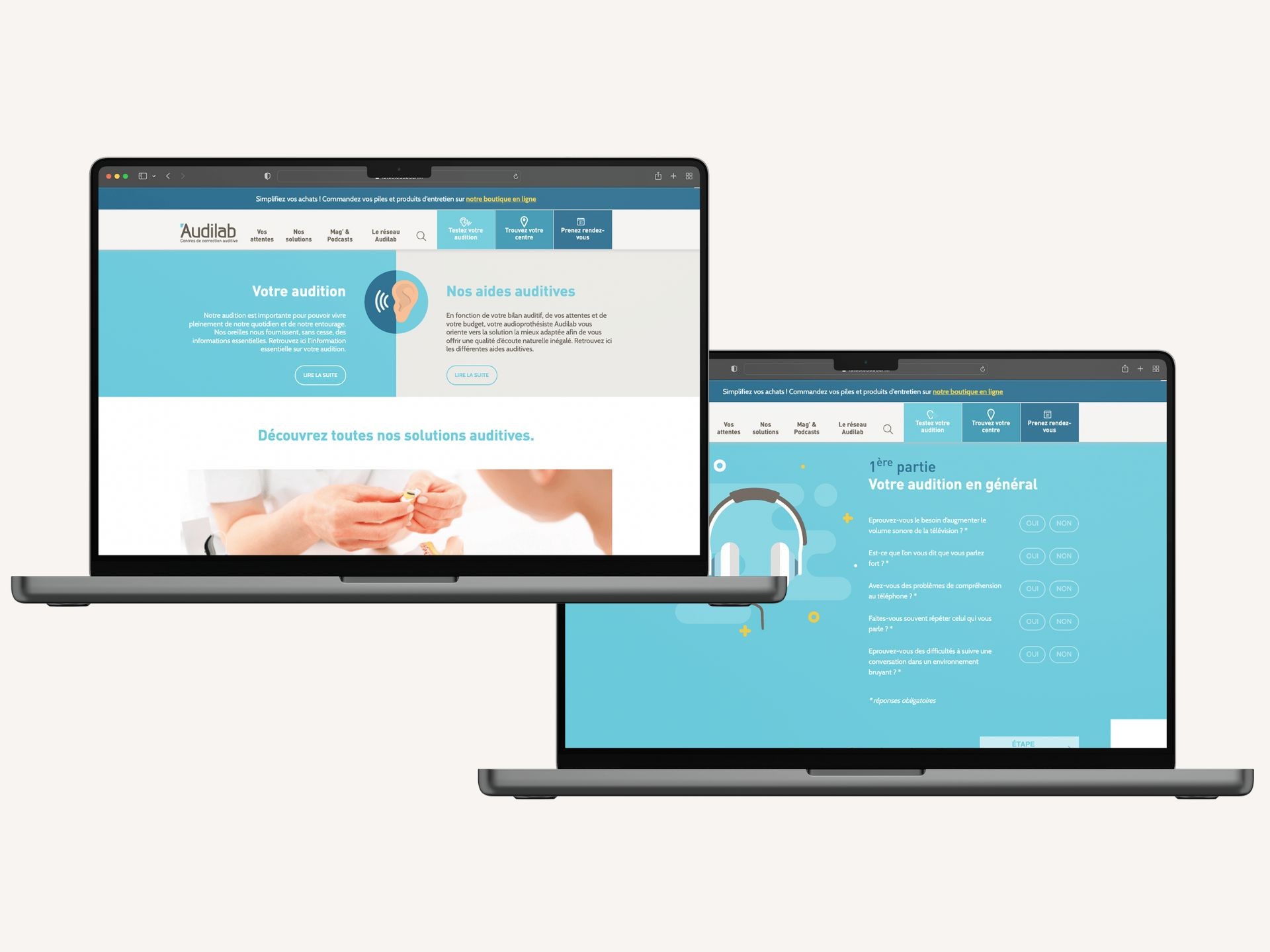 Refonte de la plateforme digitale Audilab, amélioration de l'ergonomie, multiplication des composants de collecte de leads.